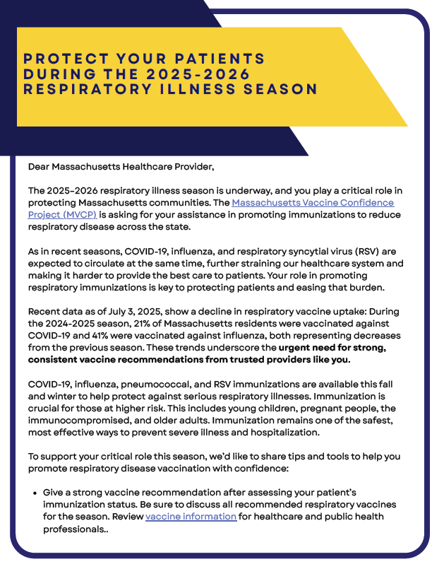 We are working to increase vaccine confidence throughout Massachusetts to ensure that all residents are fully protected against vaccine-preventable disease.