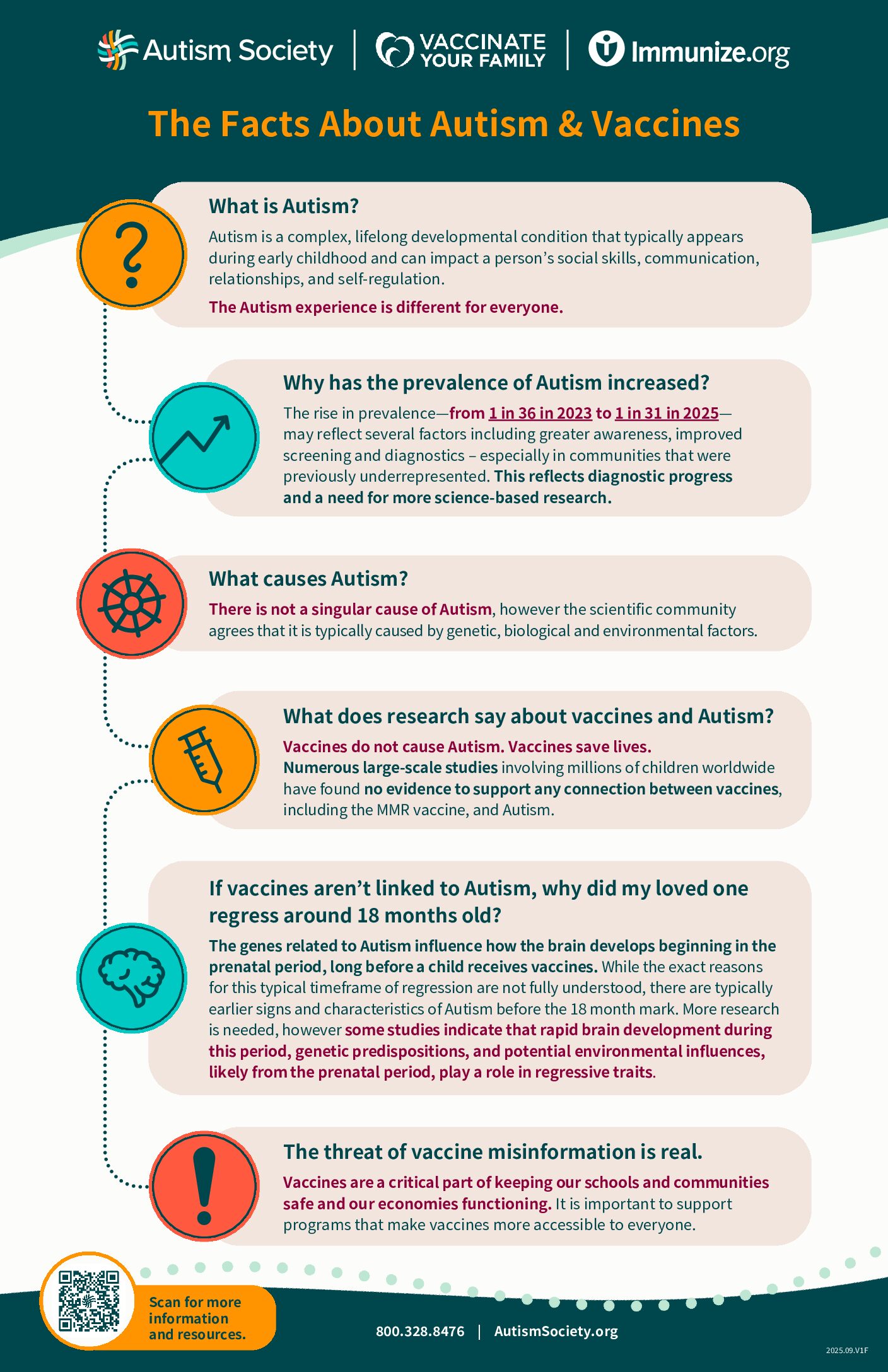 - The Facts About Autism and Vaccines – Autism Society, Vaccinate Your Family & Immunize.org